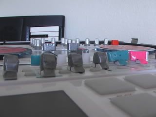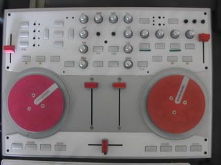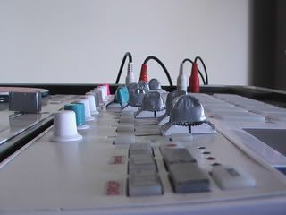 here are some close ups. did a ghetto mod on the nanokontrol with duct tape(my best friend) because i didnt like the lo profile faders that came on it. also repainted it a solid white to match. im actually using the nanopad + nanokontrol to control my decks c and d, with additional scenes on the N.pad that control cue jumps. i didnt like all the switching between decks a,b and c,d, so just dedicated my nanos to c and d. i still use traktor 3.4, so i was able to map out effects and effect selects for all 4 decks, which i am quite keen on at the moment. i also have one knob and fader for dedicated master fx, so i can do some "chaining" of fx. i bought tpro a few months ago but havent had time to imitate my tks (which is finally the way i have always wanted it) with a proper tsi. i am planning to do a couple vids on how i use the controller(s) to control 4 decks in traktor. as for the kaossilator, i can either tap in the bpm or manually set it to the same as my traktor bpm, and that way i can add some analog sounds and rythms to my set. hopefully ill be able to include a vid using it. and the case is just a simple turntable case i picked up for cheap and added my own foam padding. its also fitting my esi gigaport sound card quite well...
