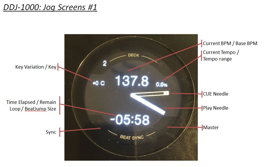 This is the first traktor mapping supporting the DDJ-1000 screeens. Already working is current BPM, current tempo, time elapsed/remaining and needle position. With a shift layer you can see total time, tempo range, and loop/beatjump sizes (for 2 seconds).