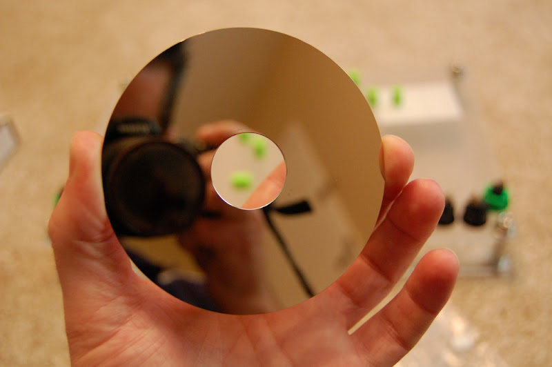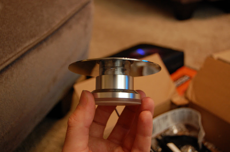And the platter is attached to the Powermate. I do not like the current screws I used, so they will be changed soon. It free-spins pretty good when I want it to, and the ‘click’ functionality of the Powermate is maintained. Nothing as sensitive or versatile as the Vestax wheels, but I am sure I will find a use for it.