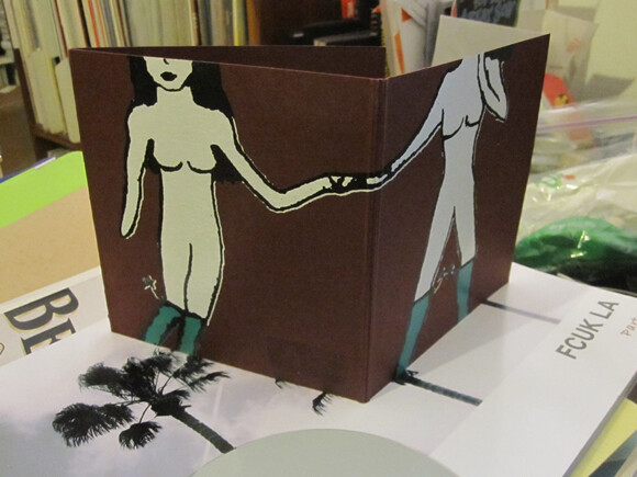 Here’s a couple to get things started. The first I found at a bookstore in Berlin (it was in a spot on the street art tour; I could dig up the name of the building but besides a bookstore and a bunch of street art they had a fantastic bar). The second is not a CD per se but the box a CD was shipped in; tasty sampledelic electronica from Kumquat.