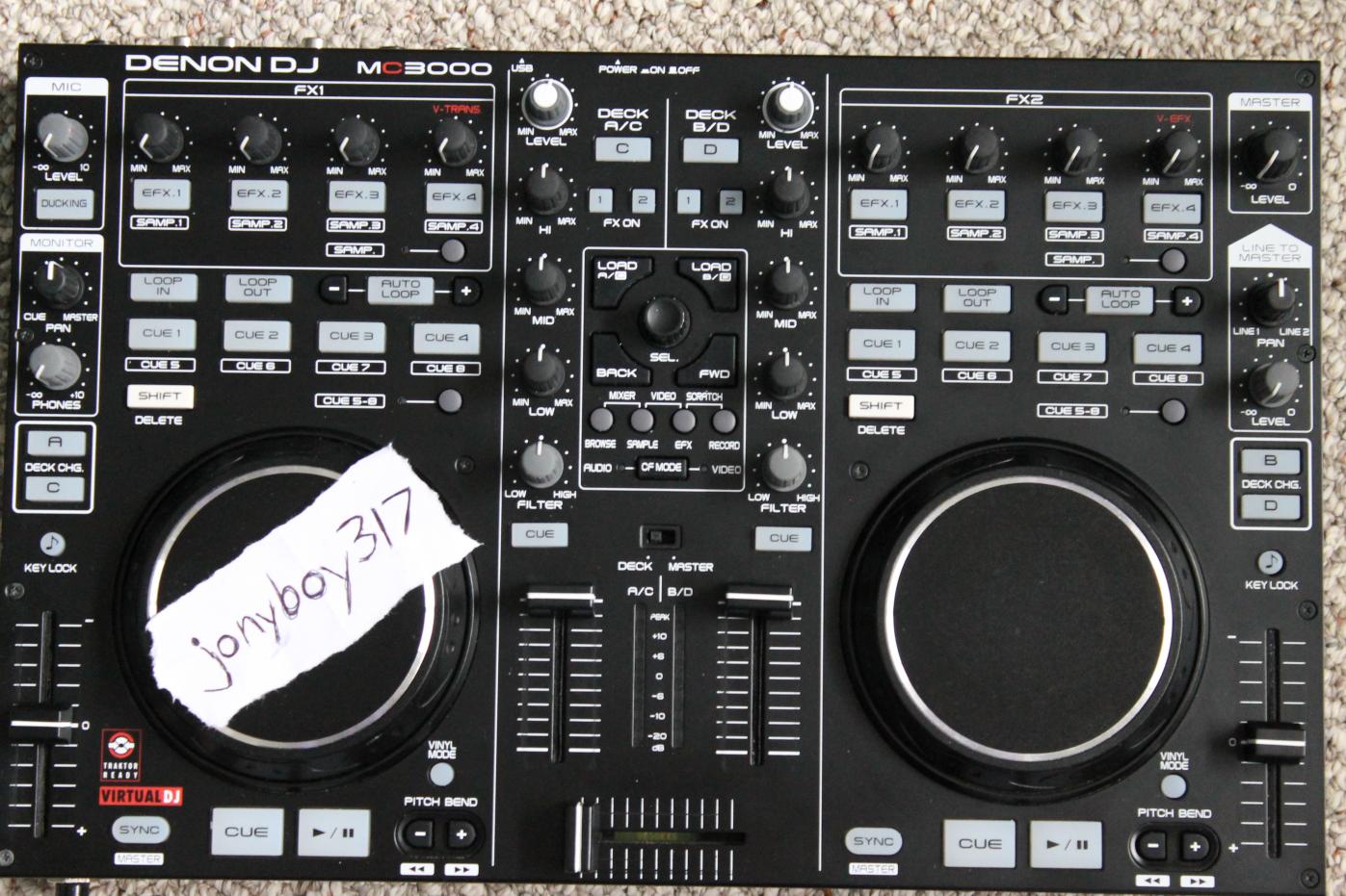 Denon MC3000: There are Neff stickers on the Jogs (can be easily removed), paint lines under the faders have worn away slightly due to use. Includes all cables and CDs.