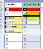 That said, the hardware was only an insight into the concept. The basic construction for Session mode is a “table” of rows and columns. You put all similar ideas into the same column, i.e. clips of the same type (audio or midi) and nature (basic kick, kick hh, kick hh and shaker, etc), as only one clip in a column can play at a time. Now a row, called a Scene, is just a set of clips you would like to play together. So by starting a Scene, all the clips in that row start together (quantized too if you like). But nothing stops you from firing individual clips (quantized or not) at any time, just remember that starting a clip will stop any other clip in the same column.