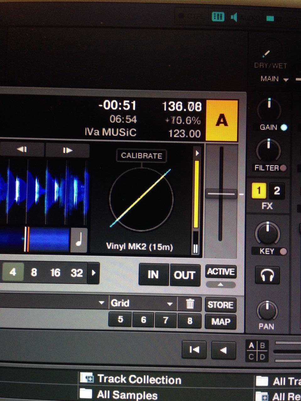 Now I have some problems with Scratch, hope I’ll get that fixed soon. Vinyl works, I’m able to rewind and stuff, but there’s no circle on the scope, only a static diagonal orange light.