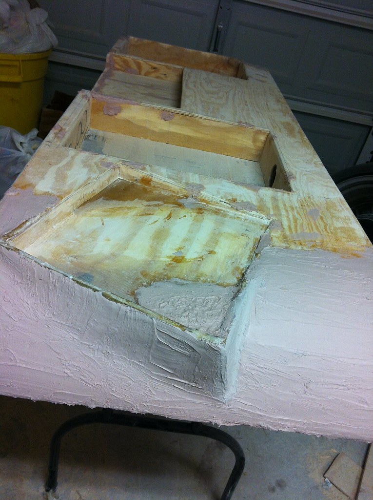 Installed the light sockets and wires in the table today Going to use floresecent bulbes from the home depot. And once i get things sanded better im going to install a glass plate so they are flush mounted.