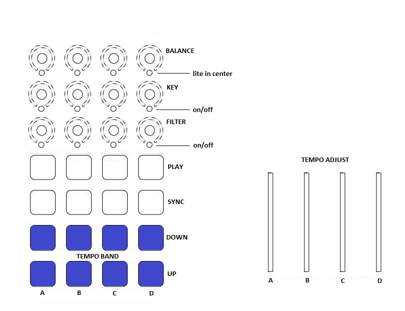Faders in right are mapped for tempo adjust (hold shift and move reset tempo to center).