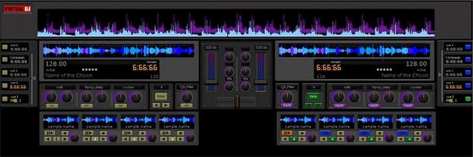 P.S. : i would say the pic of the skin u posted is looking good in the general layout of things but imo choose a brighter color scheme, purple and blacks nice but imho not the best color scheme in a dark club with strobe lights popping off + i like the notchs on the crossfader, more precise