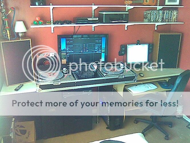 Current setup - 2 x Technics 1200, DDM4000 w/ Innofader, MPD24, Conectiv, Xponent, Sennheiser HD-25, Dell Inspiron E1705, Custom OCuk Quadcore Pc. Cubase 5, Torq 2.0.2.