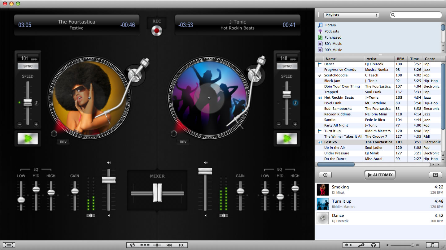 AutoMix mode (mixes automatically the playlist - with beat-match option)