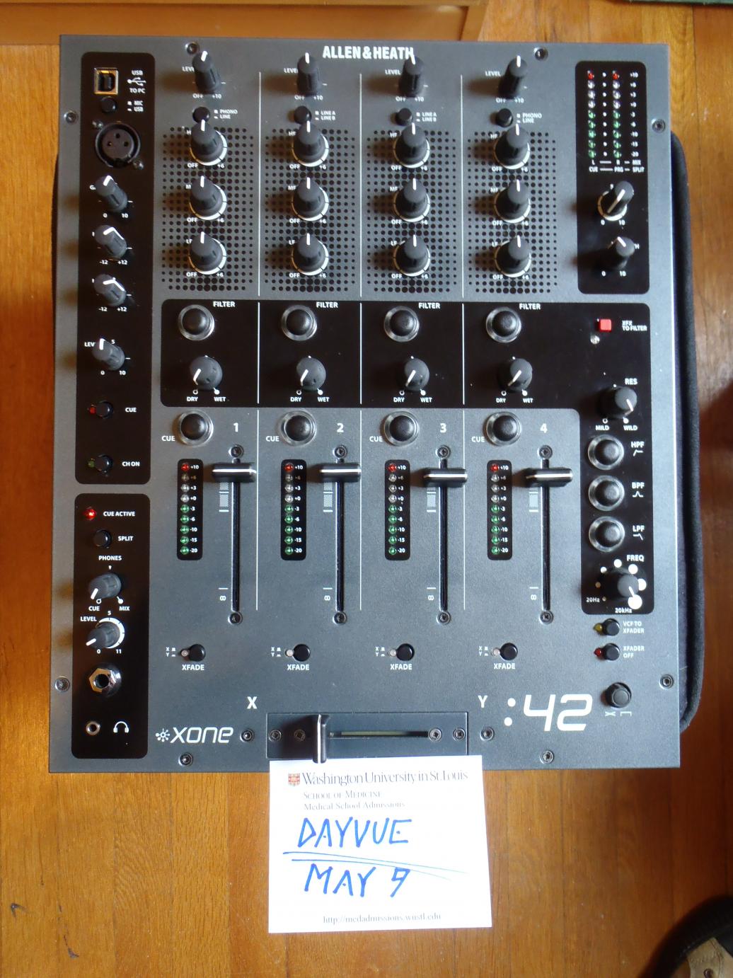 I am selling a used Xone:42 in excellent condition. It functions perfectly and has all the original knobs/faders. The built-in filters (HPF, LPF, BPF) are the best-sounding filters in the DJ industry. If you look on ebay or CL, not many of these go up for sale. This is because it is an excellent mixer that people are quite happy to own. I am selling because I recently upgraded to a DJM 850. This mixer comes in the original packaging